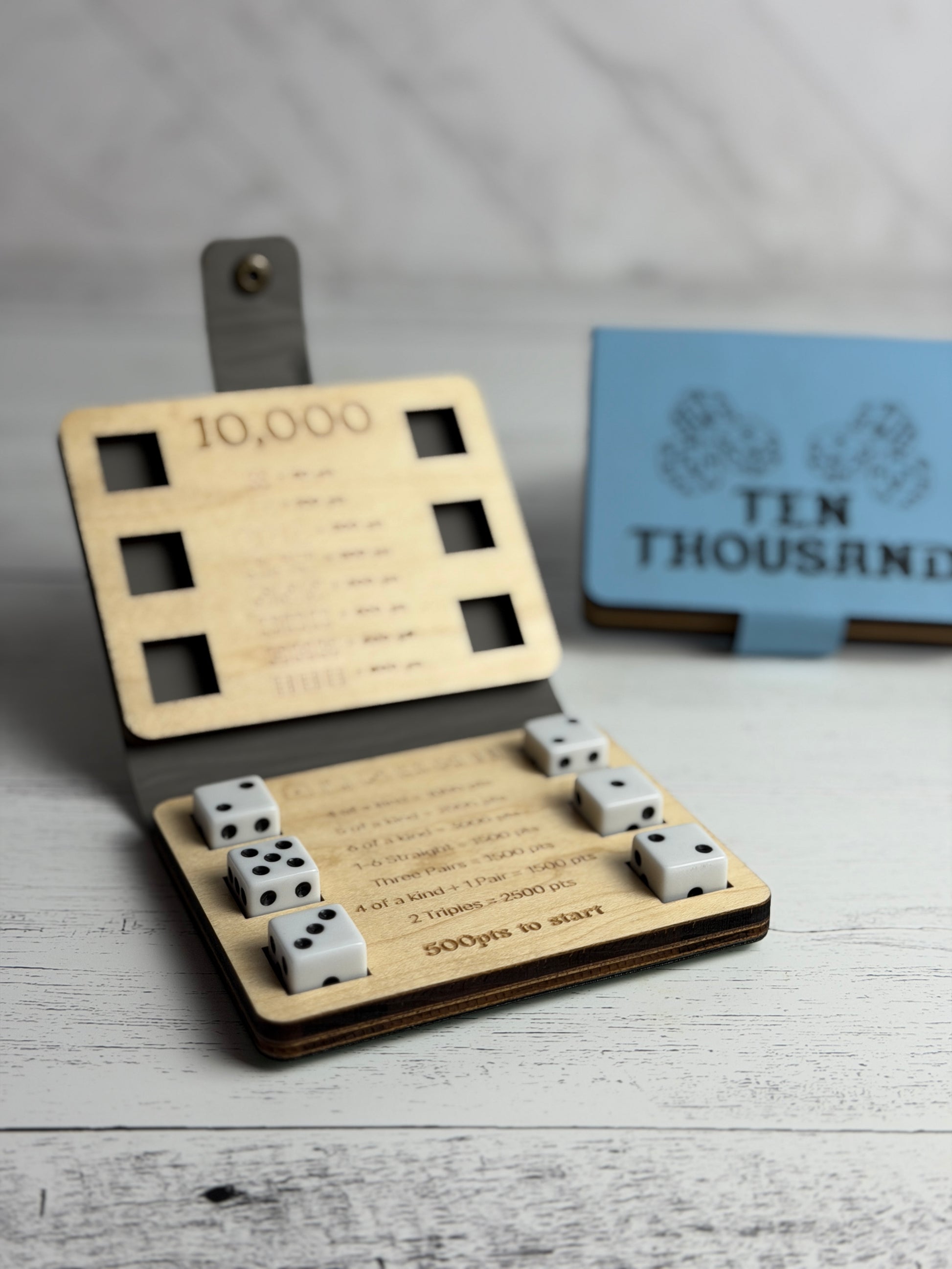 Meet 10,000, our take on the classic Farkle-style dice game, redesigned to be compact, durable, and easy to play anywhere.