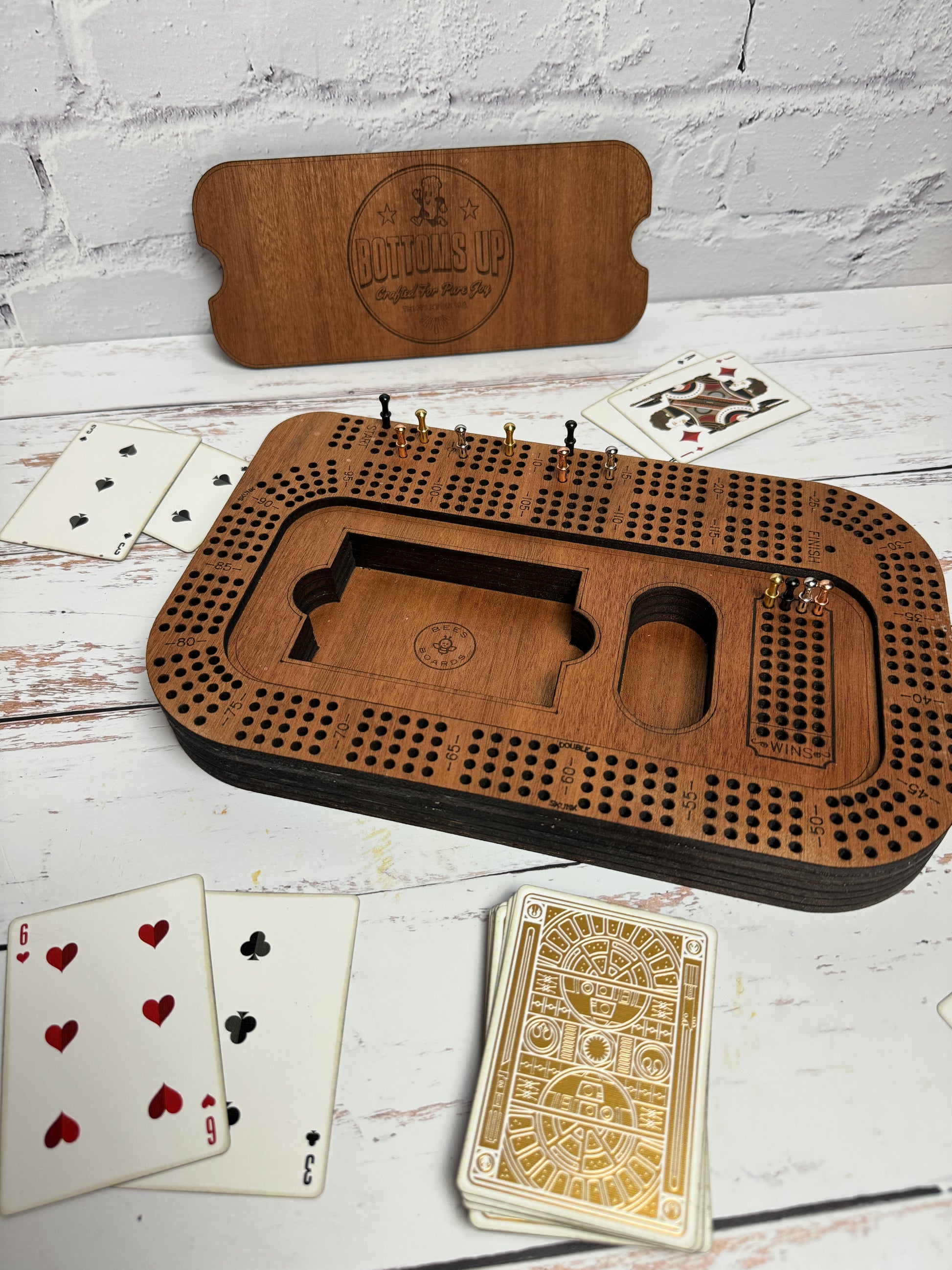 Custom 4 Track Rectangular Cribbage Board - Custom logo and lid design