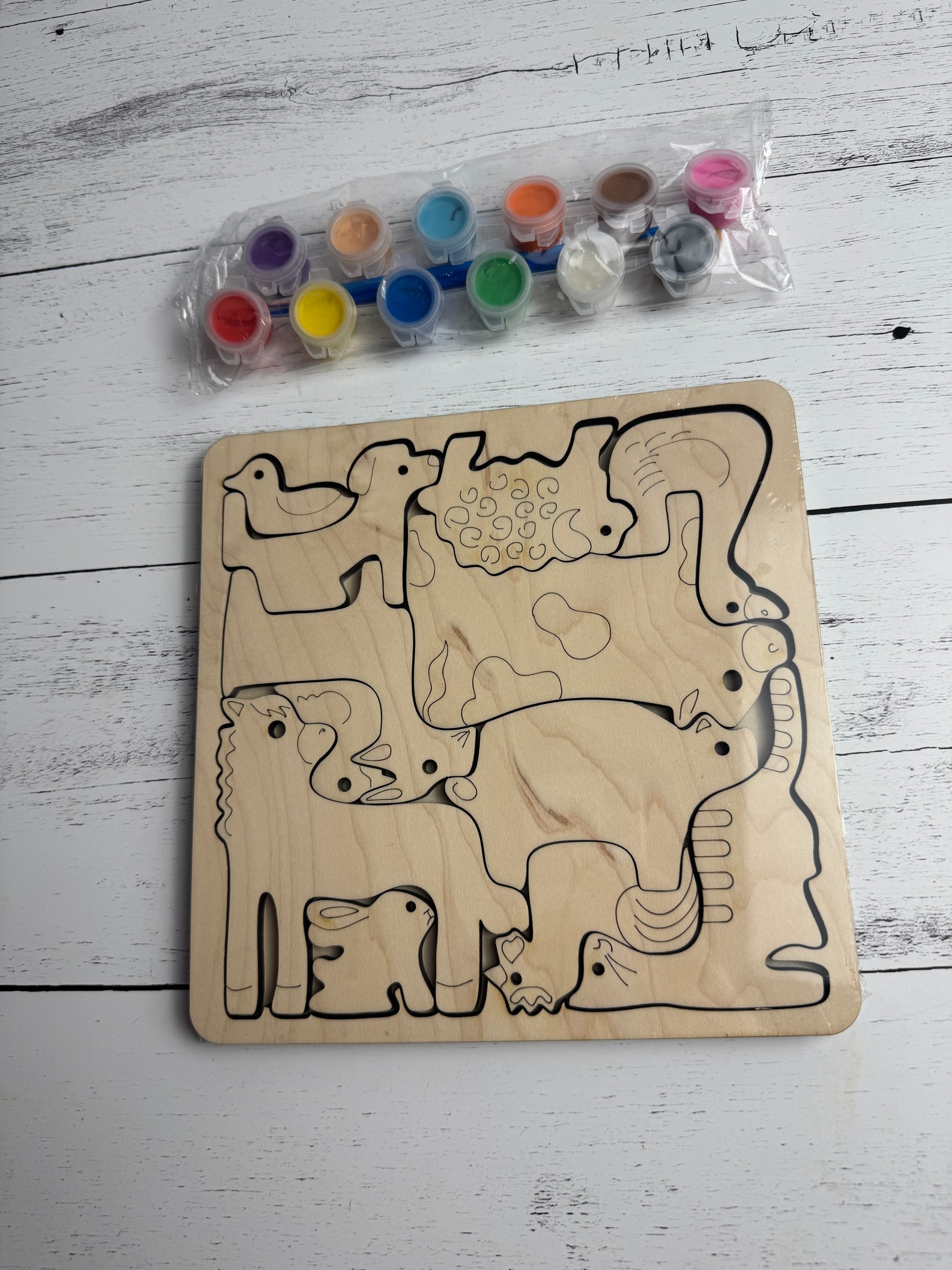 Spark joy and creativity with our delightful wooden puzzle collection! Each 7.5" square puzzle is carefully crafted from maple plywood, designed to inspire young imaginations and provide hours of fun for children.