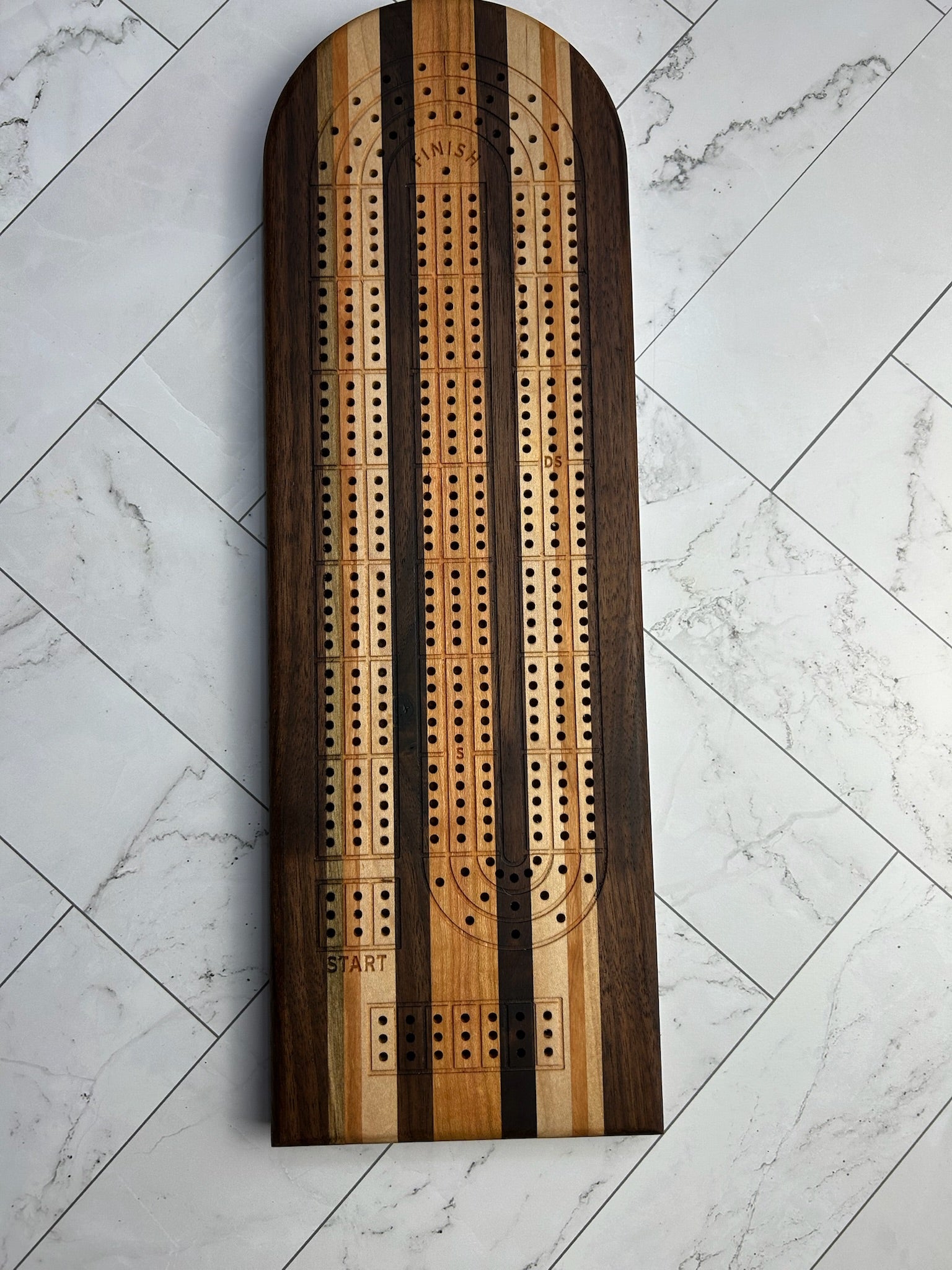 All medium sized cribbage boards have 3 track layouts, with clear markings for Start, Finish, Skunk and Double Skunk, with a section to track the scoring of your games.