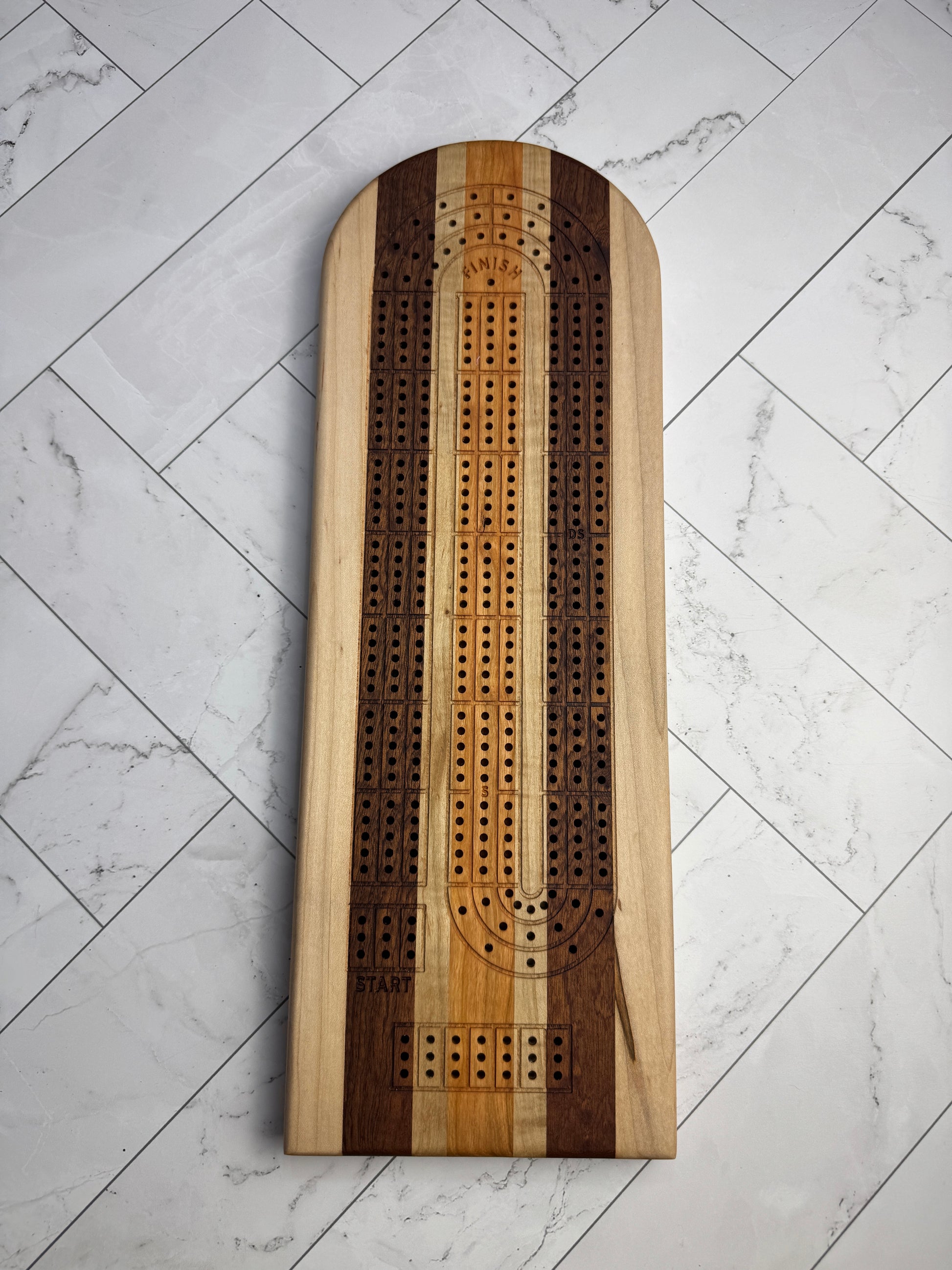 All medium sized cribbage boards have 3 track layouts, with clear markings for Start, Finish, Skunk and Double Skunk, with a section to track the scoring of your games.