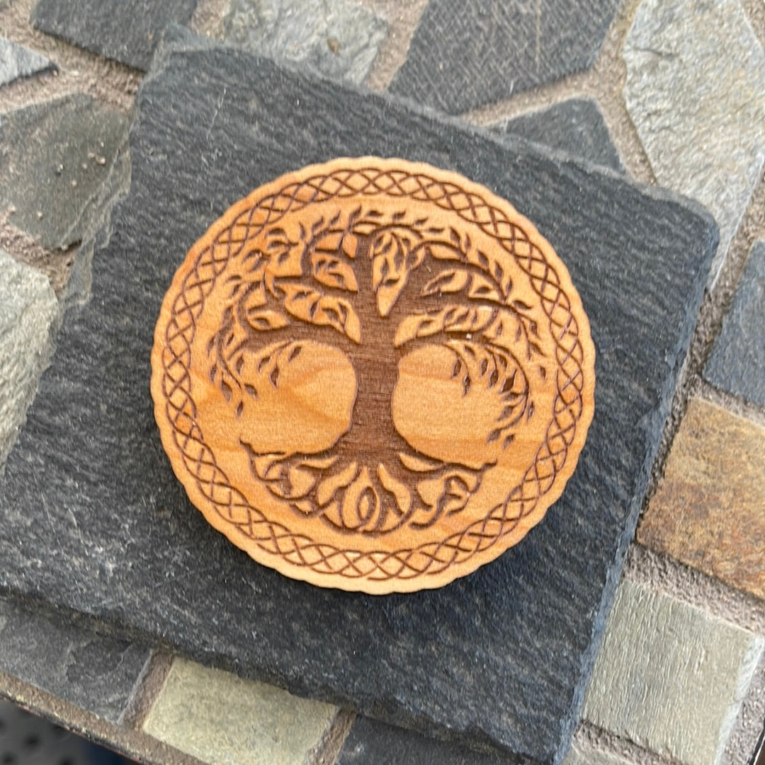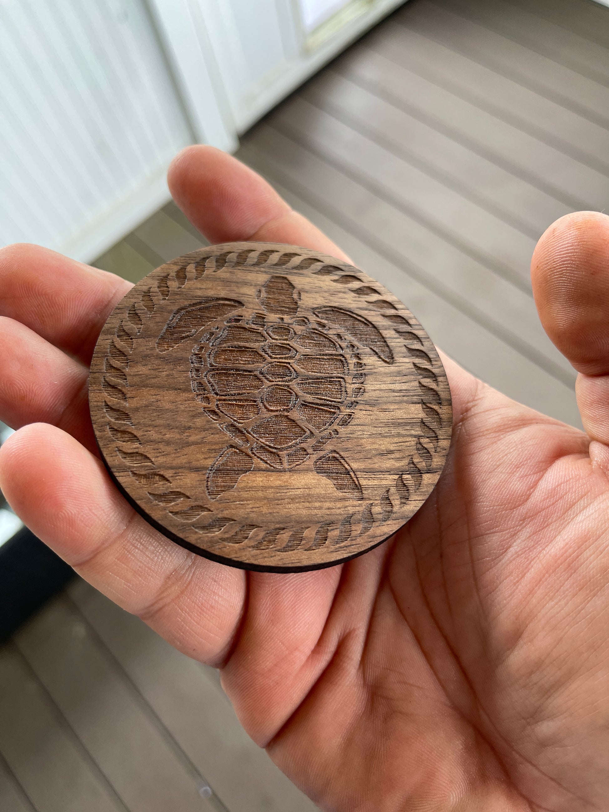 Each magnet is approximatly 2.5" in it's largest direction, and is laser engraved and cut from 1/4" birch, cherry or mahogany (wood type may vary). With a rare earth magnet fixed to the back, these make an awesome gift!