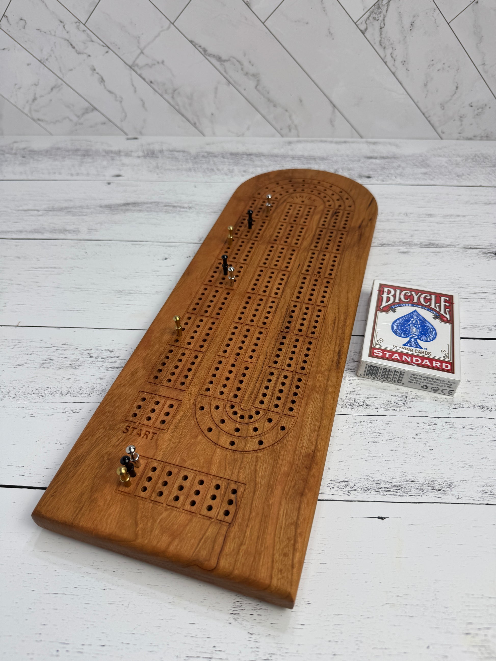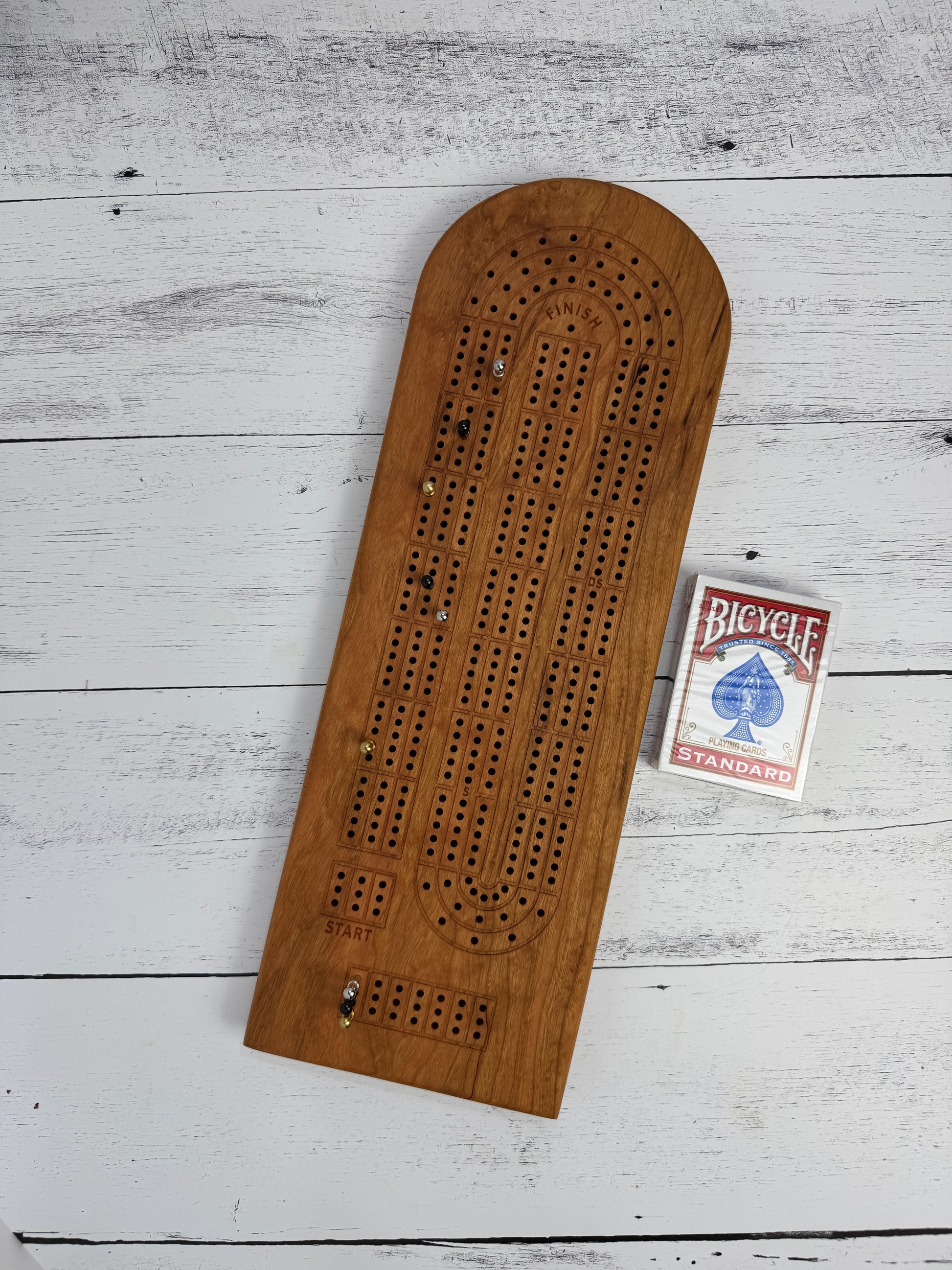 Handcrafted solid cherry cribbage boards, made from premium hardwood in our workshop. Perfect for game nights or gifting!