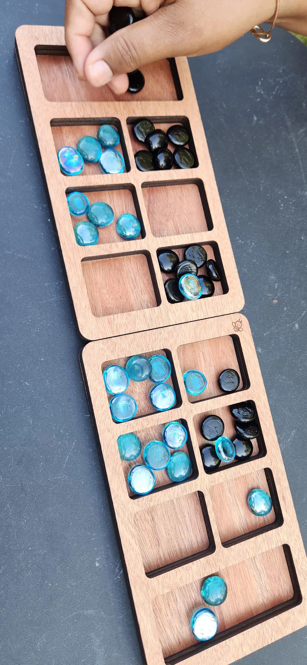 Measuring a neat 9" by 5" by 1.5" when folded, it unfolds into a full-sized Mancala board, ensuring a delightful gaming experience wherever your adventures take you. Thanks to its magnetic closure, it’s perfect for vacations, road trips, or setting up camp in your RV—gameplay made easy, wherever you wander.